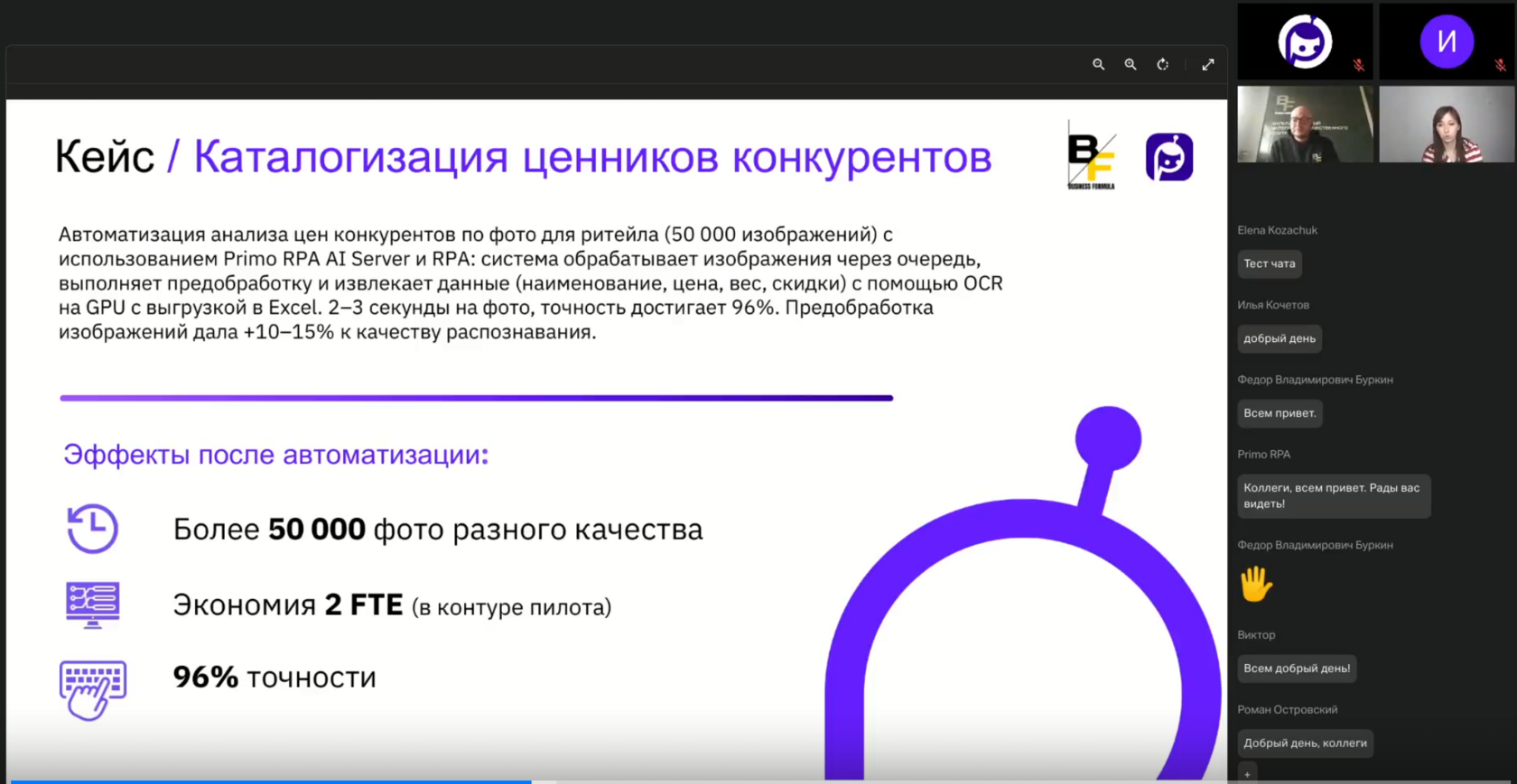 Вместе с экспертами из компании "Бизнес Формула" и торговой сети "Победа" обсудили, как связка RPA и AI помогает автоматизировать работу с неструктурированными данными: документами, фотографиями и сканами.На встрече показали реальный кейс из ритейла и разобрали практику внедрения: от пилота до масштабирования.Ответили на вопросы:— как настроить распознавание изображений плохого качества;— какие процессы окупаются быстрее всего при внедрении AI;— сколько времени обычно занимает запуск пилота и что влияет на сроки;— где AI-агенты уже работают, а где технология пока не справляется.